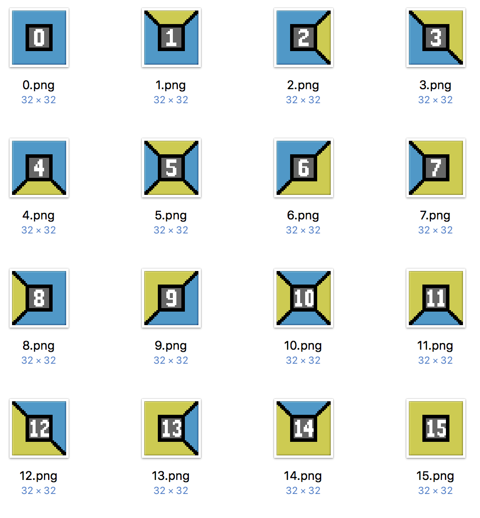 接下来要开始做有技术的事情了,为了能自动推断出每个 tile 每个方向能接另外哪些 tile ,我们首先需要知道 tile 上下左右四个方向的特征颜色